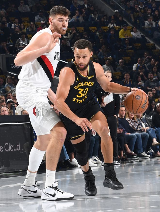 库里低头沮丧离场!48次9+三分吞里程悲 轰38+4勇士遭开拓者双杀